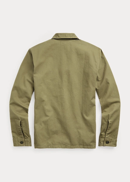 Made from cotton herringbone twill. Utility pockets on the chest. Straight hem. Washed for softness.