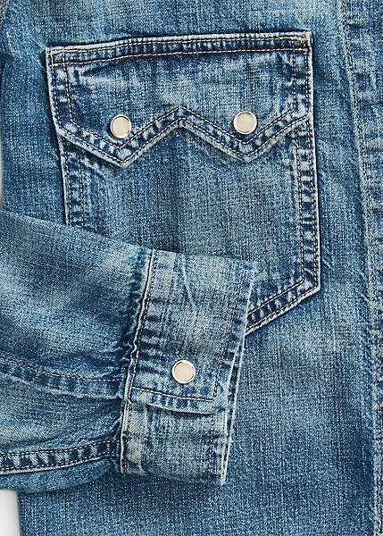 Made with 7.7 oz. Japanese denim that is dyed with true indigo. Vintage Western-inspired details. High-rim snaps. Sanforized® to minimise shrinkage.