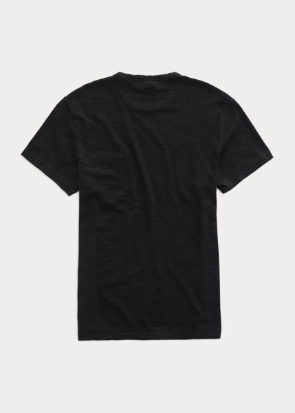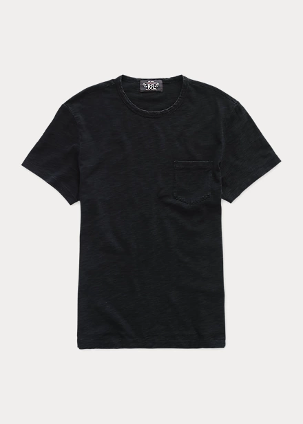 Pocket T-shirt constructed from slub jersey that is dyed with true indigo.