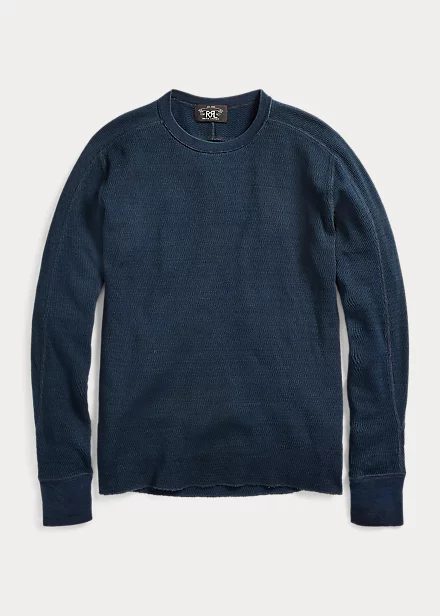 Lightweight crewneck made from double-knit cotton jacquard. Dyed with true indigo and rinsed for a timeworn, weathered appearance.