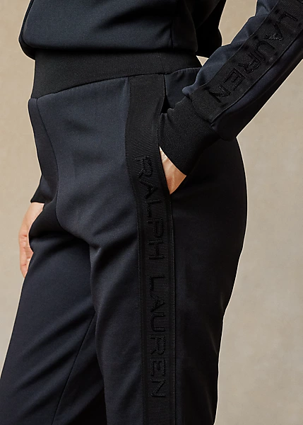 A refined spin on the tracksuit bottom, this athleisure-inspired staple is crafted with a luxurious, compact jersey that offers a subtle sheen and soft touch. Cut for a traditional jogger silhouette and equipped with on-seam pockets, this mid-rise tracksuit bottom features tonal logo jacquard tape down each leg for a signature finish.