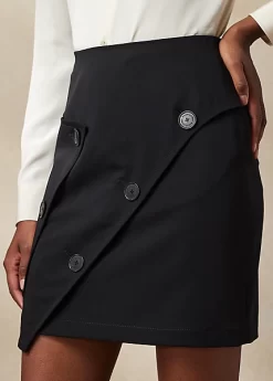 An updated take on classic American sportswear, the Karim brings traditional trench coat elements to the miniskirt with two rows of decorative genuine mother-of-pearl buttons, each engraved with “Ralph Lauren”. Cut for a slim pencil silhouette, this miniskirt is woven with ultra-fine combed wool yarns, resulting in a fabrication that creates a structured look while maintaining a fluid drape.