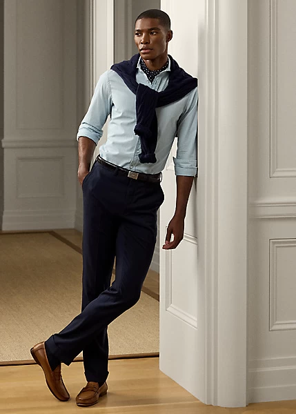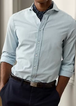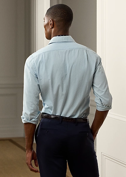 This shirt is crafted in Italy from lightweight Japanese chambray that is dyed with indigo and washed. Signature script embroidery and genuine mother-of-pearl buttons add a distinguished finishing touch.