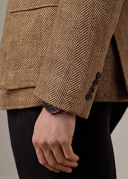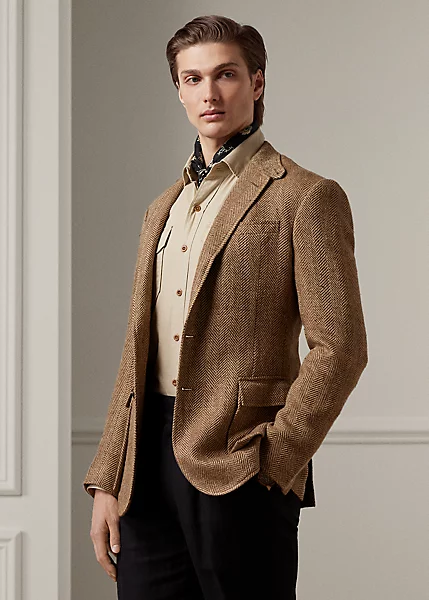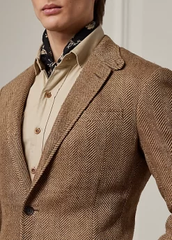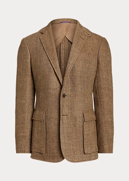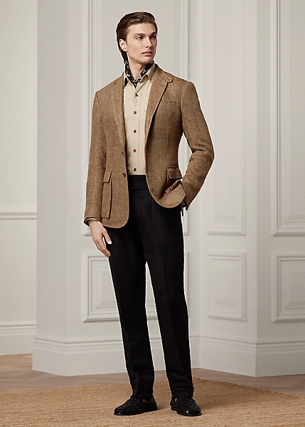 Hand-tailored in Italy, the Kent combines a lighter construction with fine canvassing and a soft shoulder to create a more natural profile. This version is crafted with a linen-and-silk cloth that was custom-developed for Ralph Lauren Purple Label.