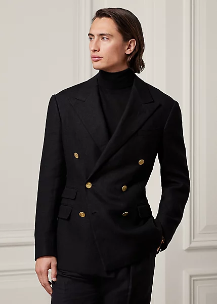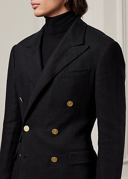 Hand-tailored in Italy, the Kent combines a lighter construction with fine canvassing and a soft shoulder to create a more natural profile. This blazer is crafted with a textured linen fabric that is exclusive to Ralph Lauren and finished with signature metal buttons.