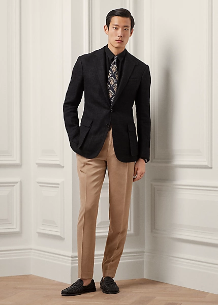 Hand-tailored in Italy, the Kent combines a lighter construction with fine canvassing and a soft shoulder to create a more natural profile. This double-breasted version is crafted with a custom-developed fabric that uses luxurious linen, silk and wool to define its herringbone texture.