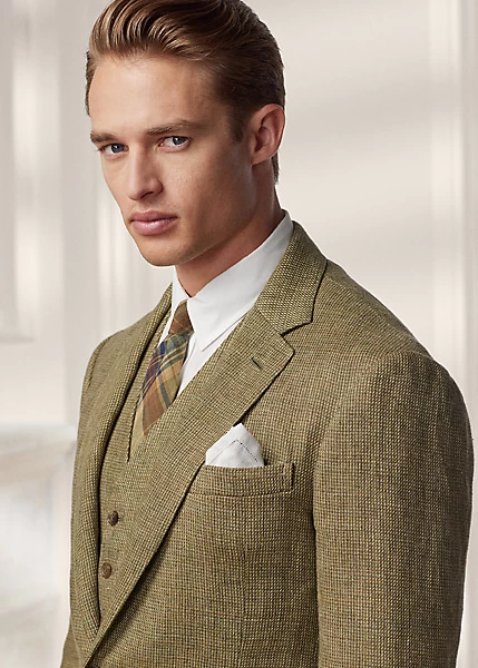 Tailored in Italy, the Kent combines a lighter construction with fine canvassing and a soft shoulder to create a more natural profile. This version is crafted with luxurious linen tweed and finished with genuine horn buttons.