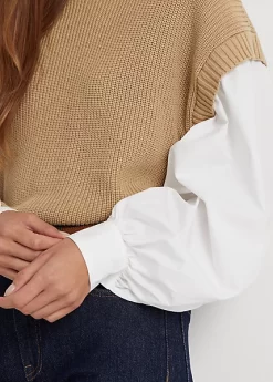 Crafted with ultra-soft combed cotton, this piece unites a jumper bodice with woven blouson sleeves for a layered look. “Lauren Ralph Lauren”-engraved pearlised buttons enhance its refined sensibility. Ralph Lauren partners with Better Cottonâ„¢ to improve cotton farming globally.