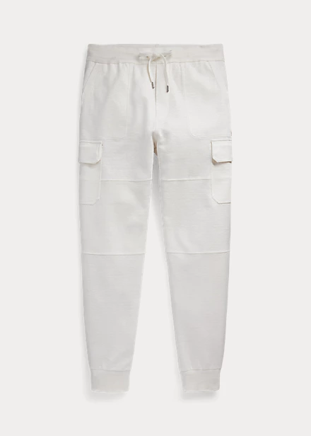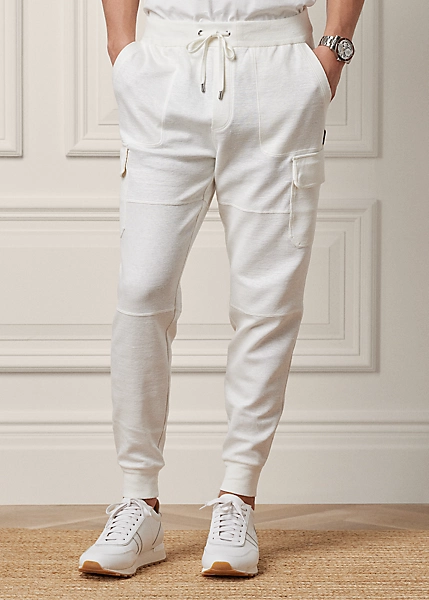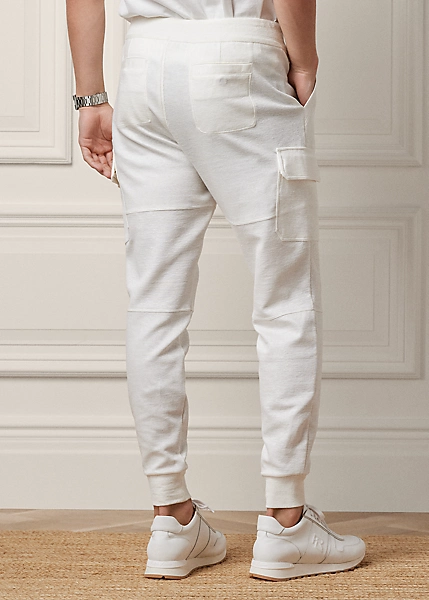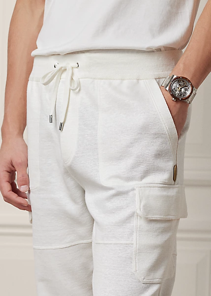 The cargo joggers are expertly crafted in Italy with linen-blend interlock and finished with suede details.