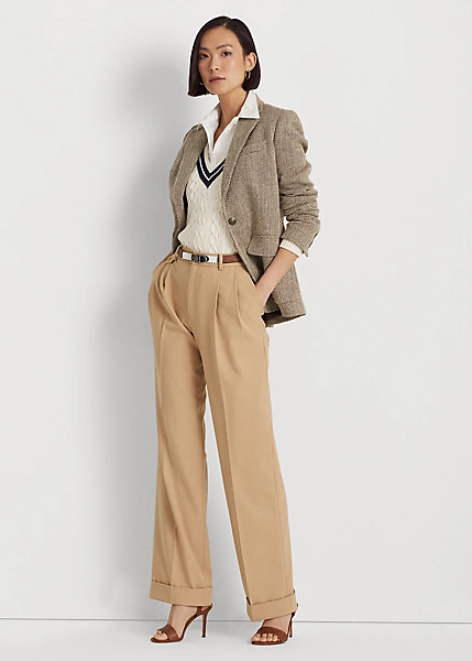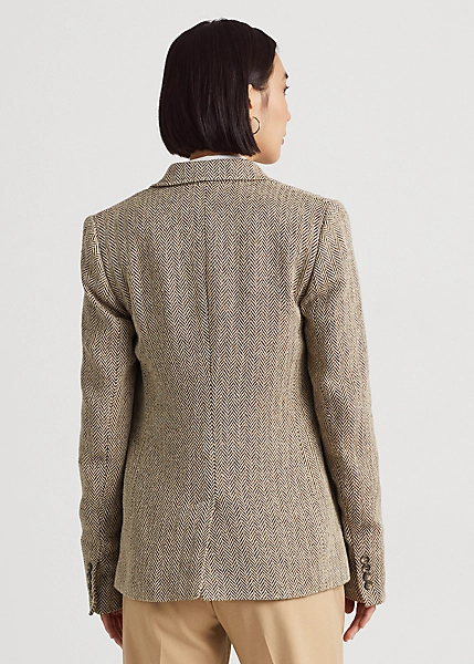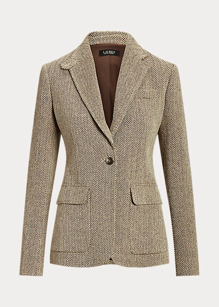 A herringbone pattern brings subtle texture and sophisticated style to this blazer, which is rendered in a lightweight linen-and-silk blend. Waist darts and princess seams enhance its tailored silhouette, while “Lauren Ralph Lauren”-engraved horn-effect buttons add a signature finish.