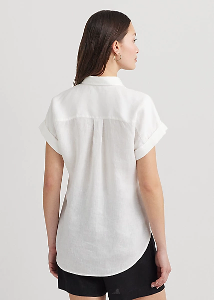 A relaxed silhouette, casual rolled cuffs and Lauren’s “LRL”-embroidered monogram on the left chest give this airy linen shirt a sense of effortless refinement. Signature engraved buttons and a sophisticated point collar afford a tasteful finish.