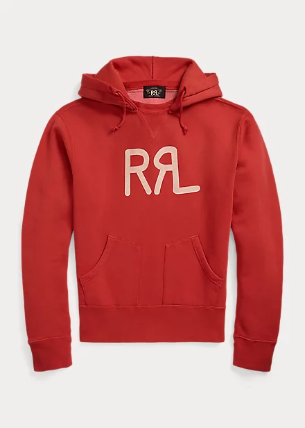 Cotton-blend hoodie printed with the Double RL Ranch logo. Garment-dyed and washed for a timeworn look.
