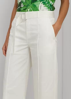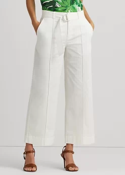 Crafted from micro-sanded twill for an amazingly soft, lightweight feel, these stylish wide-leg trousers include an adjustable belt to accentuate the waist and offer added sophistication.