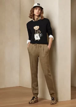 This lofty cashmere jumper depicts the Polo Bear in an outfit informed by the unexpected yet timeless aesthetic of the Pre-Fall 2023 Collection. A master embroiderer applies a variety of artisanal techniques to create the season’s Moto Polo Bear, which is rendered in highly considered materials, including synthetic hair for the leopard-print jacket and shoes, wool gabardine for the trousers and lambskin for the Ricky bag.