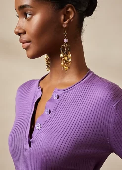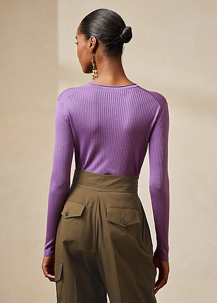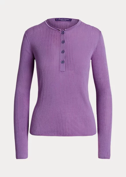 Mulberry Silk Rib-Knit Henley Jumper