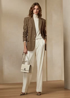 Taking cues from a Purple Label jacket, the Odera incorporates elements of timeless men’s tailoring, including flapped pockets and notch lapels. Italian-made with the season’s Glen plaid wool tweed, this blazer is accented with genuine horn buttons engraved with “Ralph Lauren” for a signature finish.