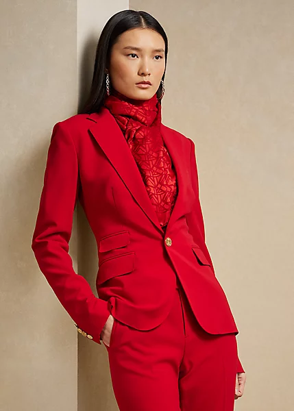With equestrian-style hacking pockets, this season’s Parker is beautifully constructed in Italy with a bevy of highly considered details, like slimming waist darts, notch lapels and a single-breasted closure that secures with a gold-tone button engraved with Ralph Lauren’s crowned monogram.