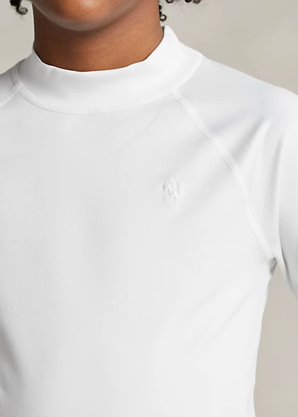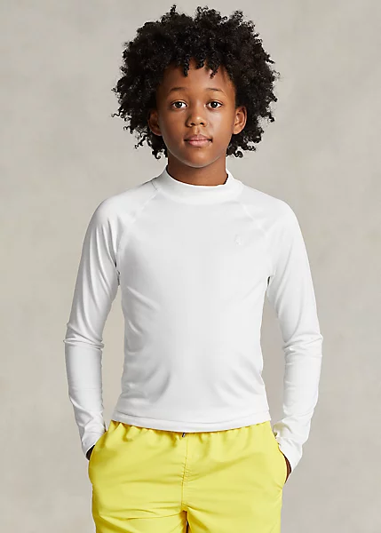 This rash guard is made with moisture-wicking stretch jersey and offers UPF 50 protection from UV rays.