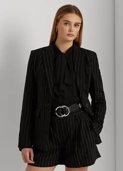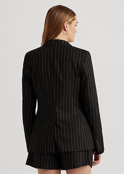 An enduring wardrobe staple, this sophisticated blazer is distinguished by classic pinstripes. Its linen-blend twill construction affords a lightweight feel, while a menswear-inspired silhouette and signature horn-effect buttons provide a refined finish.