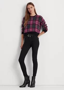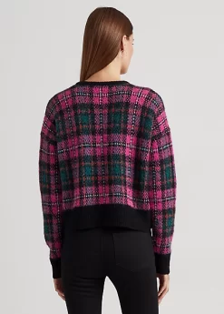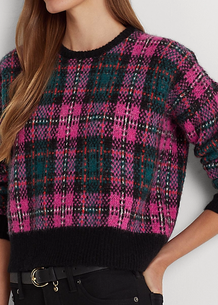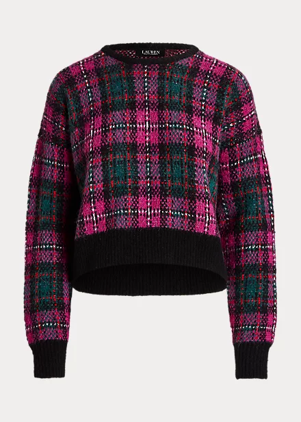 Spun from an ultra-soft wool blend, this cosy jumper is distinguished by the season’s vibrant plaid motif.