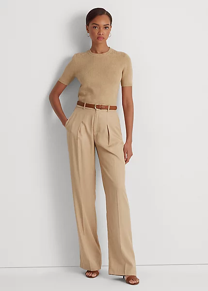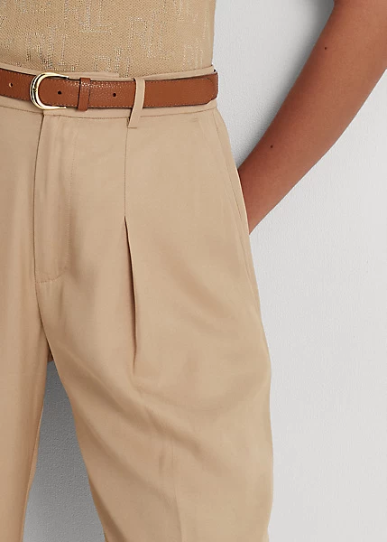 Pleated Twill Wide-Leg Trouser