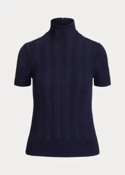 An elegant wardrobe staple, this short-sleeve jumper merges a timeless roll neck with a delicate pointelle-knit pattern. Rendered in a soft cotton blend, it includes a lightweight camisole lining. Ralph Lauren partners with Better Cottonâ„¢ to improve cotton farming globally.