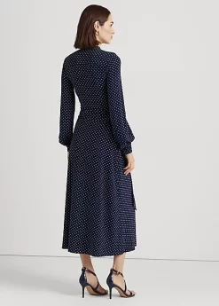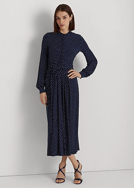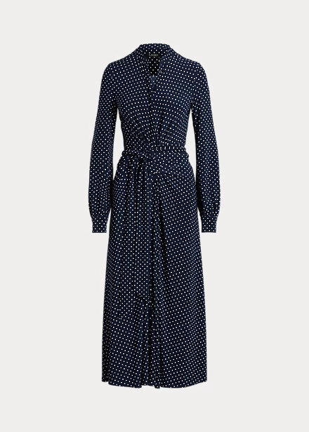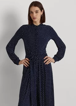A timeless polka-dot print lends to the charm of this shirtdress, which is made with soft, stretch-infused jersey for comfort and ease of movement. A self-belt creates a defined silhouette, while “Lauren Ralph Lauren”-engraved pearlised buttons afford a signature finish.