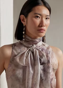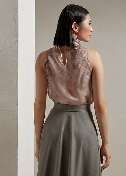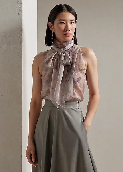 An elegant wardrobe staple with a timeless sensibility, the Italian-made sleeveless Pollard blouse is defined by a dramatically draped scarf neckline and crafted with lightweight silk chiffon – a lustrous fabrication printed in a Como, Italy, mill with the season’s bouquet-inspired floral motif, which utilises a collage of floral patterns to create a beautiful mosaic.