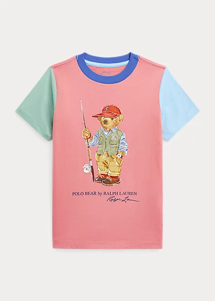 Our beloved mascot is dressed for a day of fishing on this colour-blocked cotton jersey tee. Ralph Lauren partners with Better Cottonâ„¢ to improve cotton farming globally. Better Cotton trains farmers to use water efficiently, care for the health of the soil and natural habitats, reduce use of the most harmful chemicals and implement the principles of decent work.