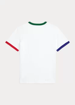 Complete with colourful trim, this crewneck tee features our iconic mascot ready to play basketball in the season’s striped separates.