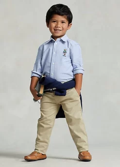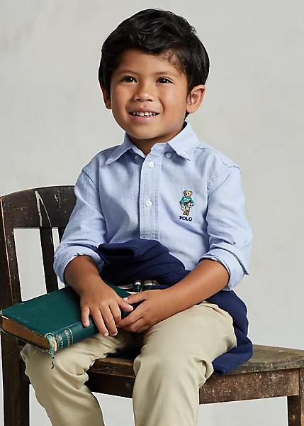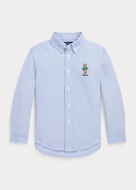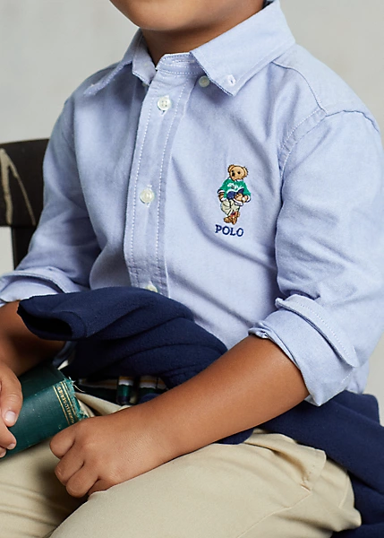 In our signature Oxford fabric, this shirt is embroidered with our iconic Polo Bear reading a book.
