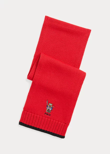 This combed cotton scarf features cosy fleece lining and the iconic Polo Bear dressed for a day on the slopes.
