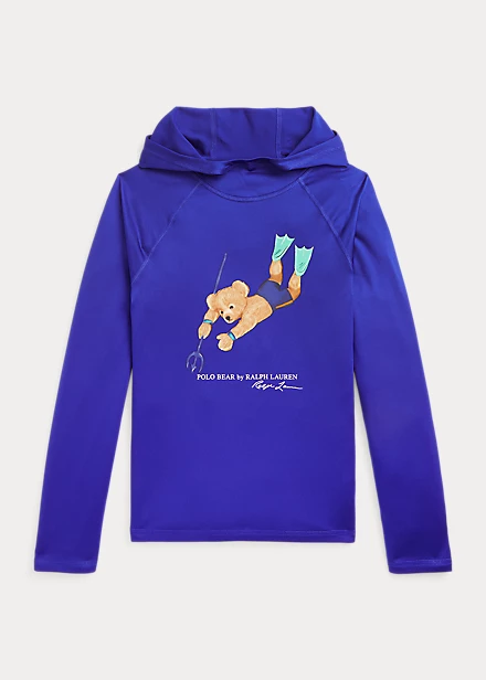 This rash guard’s moisture-wicking stretch jersey is made with recycled polyester and offers UPF 50 protection from UV rays. On the front, it features a print of our iconic Polo Bear exploring the ocean.