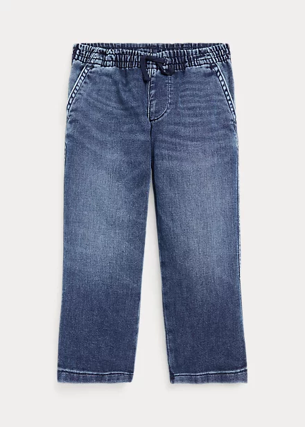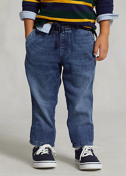 These jeans feature an elastic drawstring waistband and extra stretch for a comfortable fit.