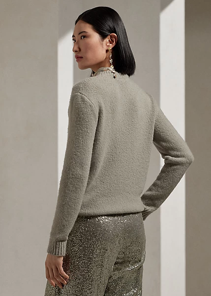 With the work of four highly trained technicians, this crewneck jumper features an oversized, script “RL” monogram on the chest, which is formed using a special hand-machine technique that uses a tubular self-yarn for a three-dimensional look. Italian-made, this timeless style is crafted with a washed, warm-handed bouclé rendered in a luxurious blend that includes cashmere, wool and silk.