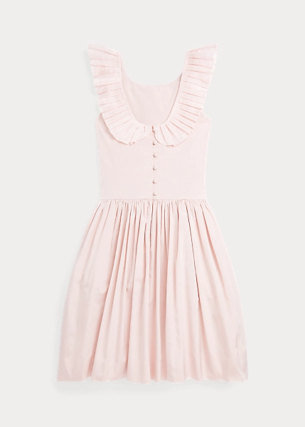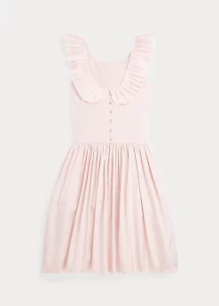 This occasion-worthy dress unites a luxurious blend of mulberry silk and cotton with thoughtful details like ruffle trim and sleek princess seams.