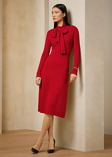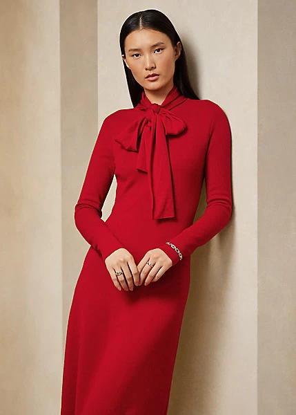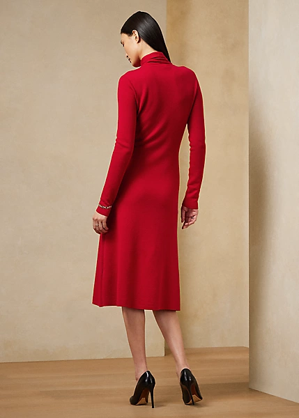 Beautifully knit in Italy with our ultra-fine-gauge cashmere, this long-sleeve sweater dress is characterised by a chic scarf neckline and a fitted, slightly A-line silhouette, which elegantly contours to the shape of the body.