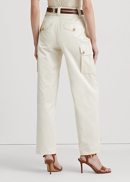 Lauren Ralph Lauren updates the cargo trouser with a wide-leg silhouette and a lightweight shantung fabrication for a polished look. Exuding casual sophistication, it pairs surplus-inspired pocketing with signature horn-effect buttons and traditional tailoring details, including crisp waist darts. Ralph Lauren partners with Better Cottonâ„¢ to improve cotton farming globally.