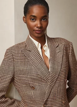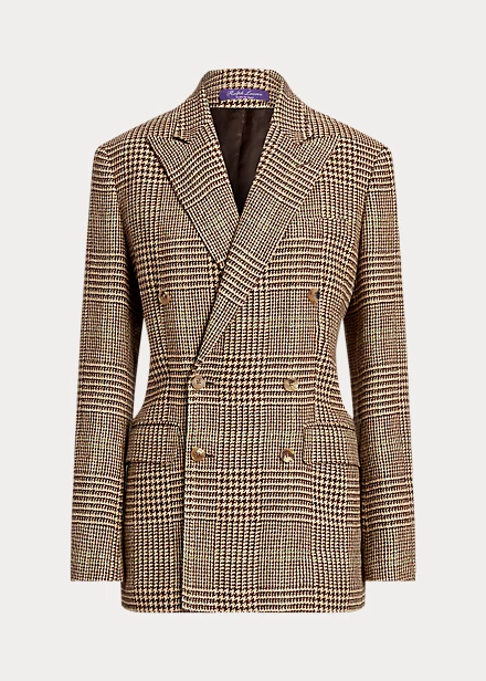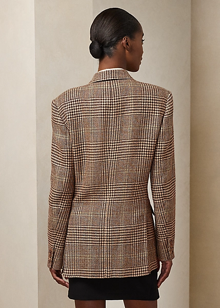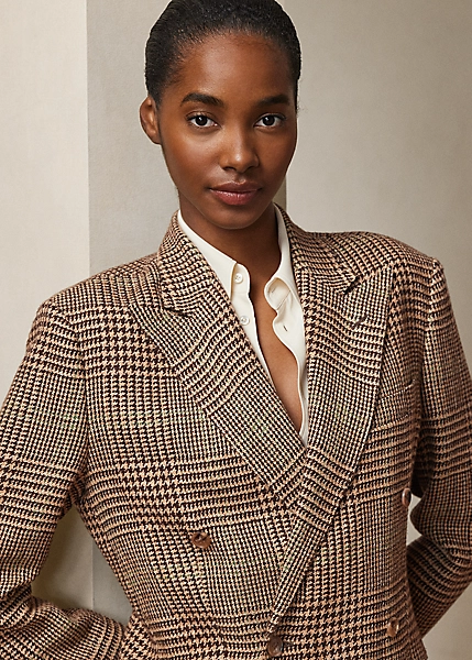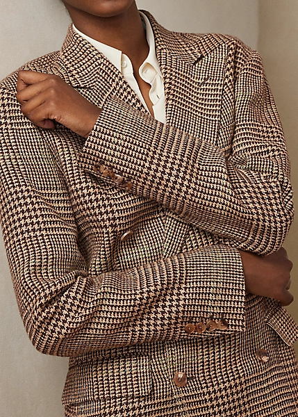 Made in Italy with linen-blend tweed, considered for its remarkable drape and soft, refined hand feel, the Shelden is cut for a slightly oversized fit and detailed with genuine horn buttons engraved with “Ralph Lauren”. Its Glen plaid motif offers a classic yet versatile look.