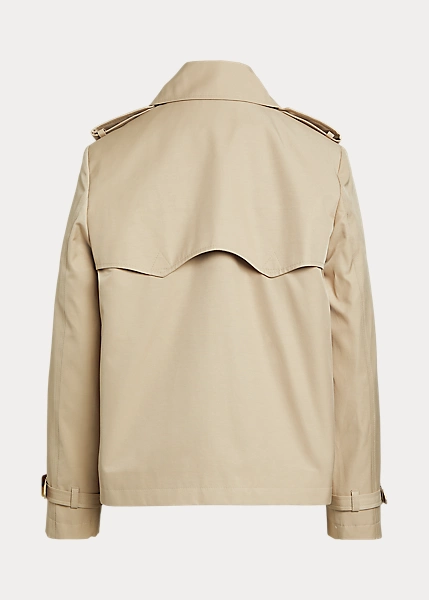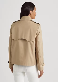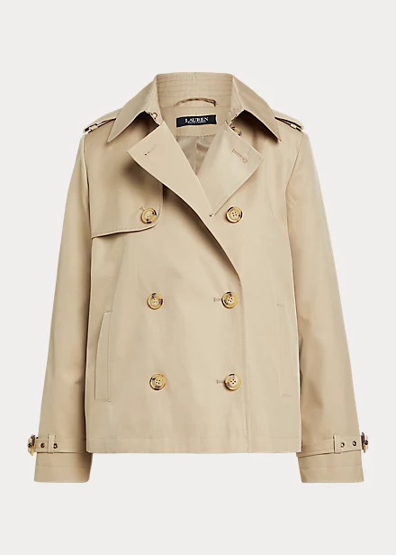 An elevated outerwear staple, Lauren’s modern take on the double-breasted trench coat pairs traditional styling details with a short silhouette. Made with a soft cotton blend, it’s finished with signature horn-effect buttons for added sophistication.