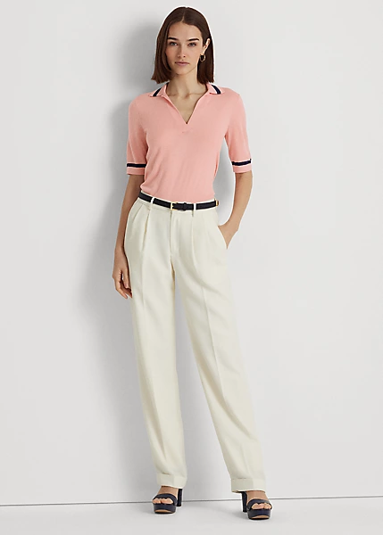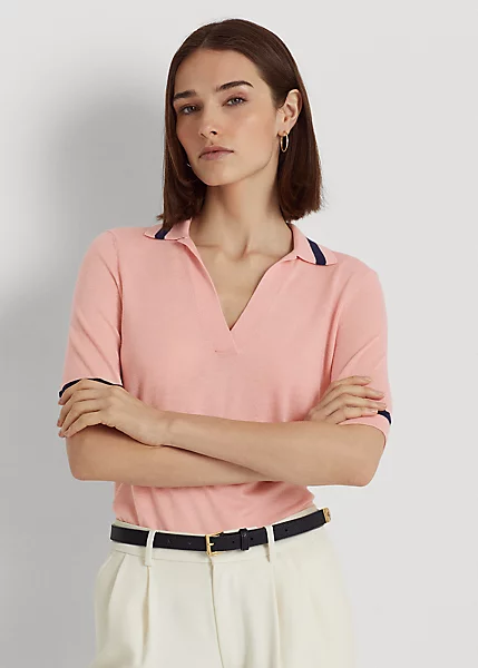 Inspired by Ralph Lauren’s iconic Polo shirt, this short-sleeve jumper features a two-tone design and a ribbed Polo collar. A sophisticated wardrobe staple, it’s rendered in a luxurious silk blend for a soft hand.