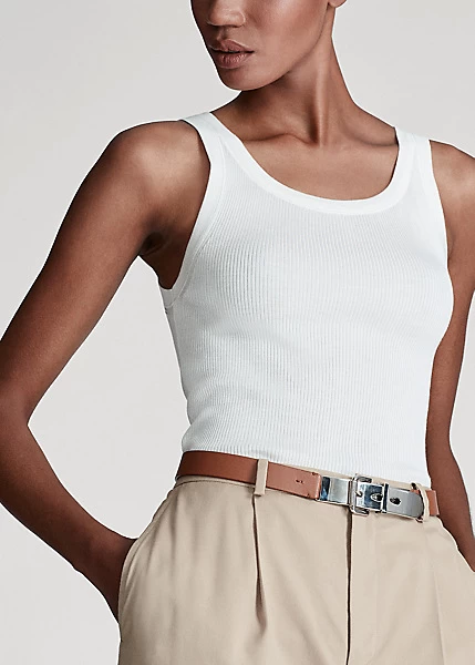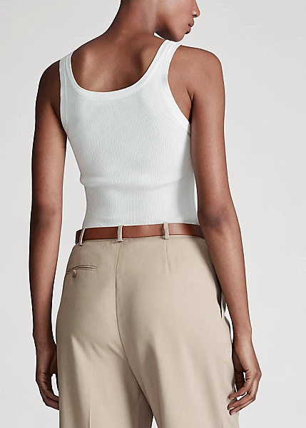 Ralph Lauren beautifully elevates the essential tank top by uniting lustrous silk spun in Italy with a textural fine rib knit.