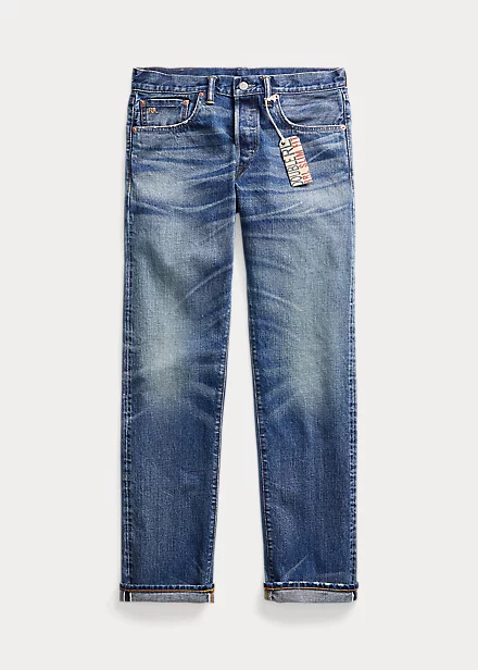 Made in America from Tennessee-grown cotton. Yarn is ring-spun and rope-dyed in Japan using natural indigo. Woven on vintage shuttle looms to create 15.92 oz. right-hand twill that is exclusive to Double RL. Selvedge construction inspired by ’30s denim. Hand-finished in a process that involves up to 50 individual steps using specialised tools and techniques.