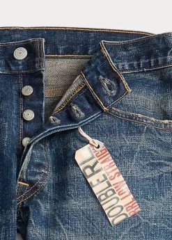 Made in America from Double RL’s most lightweight twill that offers a substantial look. Exclusive 11.3 oz. selvedge denim woven in Japan. Features a red-blue cast. High-contrast dark indigo wash with hand distressing.