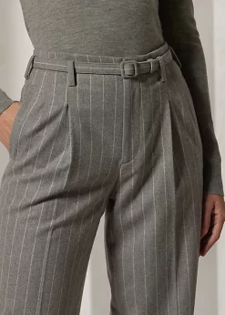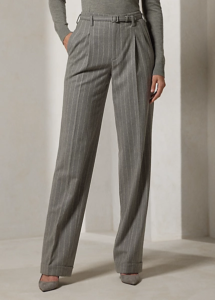 A high rise and a straight-leg silhouette define the flattering fit of the Stamford, which is finished with fine tailoring details, including back waist darts and leg creases. This season’s chalk-stripe rendition is crafted with extra-fine merino wool that’s brushed to create its soft hand feel.