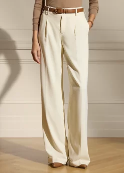 Crafted from wool crepe, the Stamford defines Ralph Lauren’s signature menswear-inspired trousers for women, as it’s designed with a Hollywood waist, front double pleats and crisp leg creases. A self-belt elevated by a petite square-shaped buckle creates definition at the waist, while a high-rise fit and a cuffed leg evoke a strong feminine aesthetic.