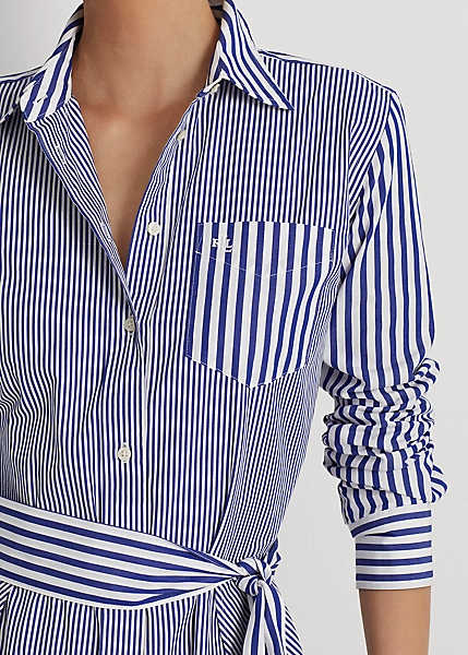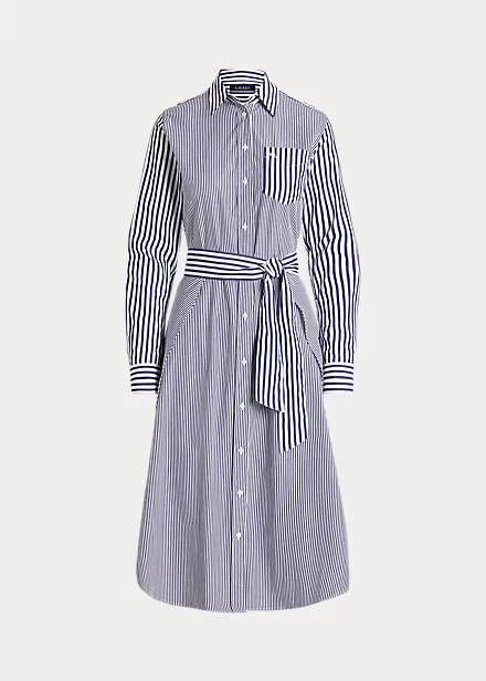 Exuding effortless sophistication, this iteration of Lauren’s iconic shirtdress features timeless stripes and is crafted from crisp cotton broadcloth for a tailored look.