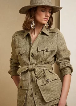 An iconic Ralph Lauren silhouette, the Tasha puts a fresh spin on our signature field jacket. Embodying Pre-Spring 2023’s key theme of balancing utility with luxury, this jacket is equipped with an array of pockets, buttoned shoulder epaulets and a buckled belt on the waist, which is centred by a lamb suede-covered buckle. Italian made, the Tasha is crafted with multibroken twill – a tweed fabrication that unites the soft hand feel of silk with the rustic allure of linen.