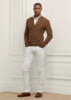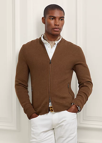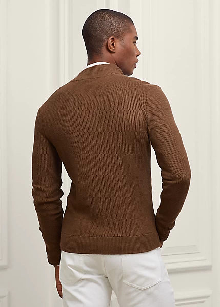 This full-zip jumper is crafted in Italy using a textured tuck stitch that allows for greater shape retention in the garment. Its medium-weight yarn blends fine mulberry silk and soft cotton.