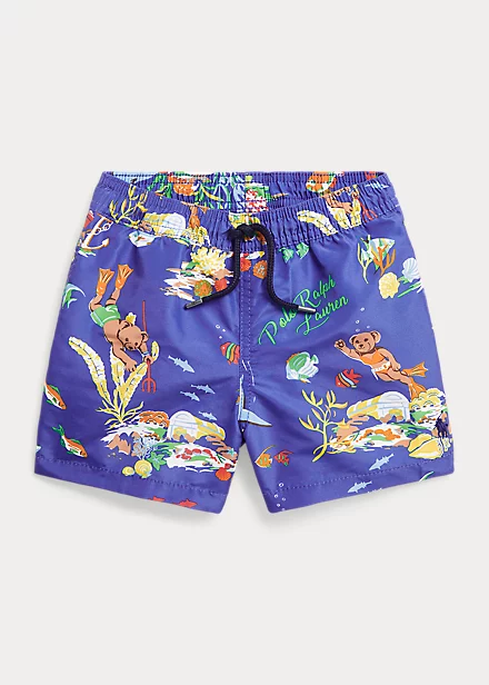 Featuring our iconic Polo Bear exploring the ocean, these lined swim trunks are a fun addition to beach trips and pool days.